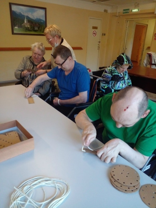 Яркие ленты, ускоренный темп выполнения упражнений, зашнуровывание разных способами понравились нашим получателям социальных услуг.