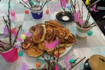 Это был настоящий праздник творчества. Всем очень понравилось работать с природными материалами – украшать веточки нежными пёрышками. Отдельный восторг – лепка яиц из пластилина и их «вывешивание» на импровизированное дерево, получилось очень красиво и необычно. Но самым вкусным моментом, конечно, стала кулинарная часть: мы вместе напекли оладьи , и они получились невероятно вкусными! Съели всё с большим аппетитом.
