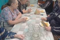 Мастер - класс" Хрустящий витамин" .Вкусно, полезно и очень душевно! Именно так можно описать наш прошедший кулинарный мастер- класс. Наши получатели услуг с большим энтузиазмом взялись за дело : кто-то уверенно шинковал капусту, кто-то с особым чувством резал лук и сладкий перец. Получился не просто салат ,а символ совместного труда и общения