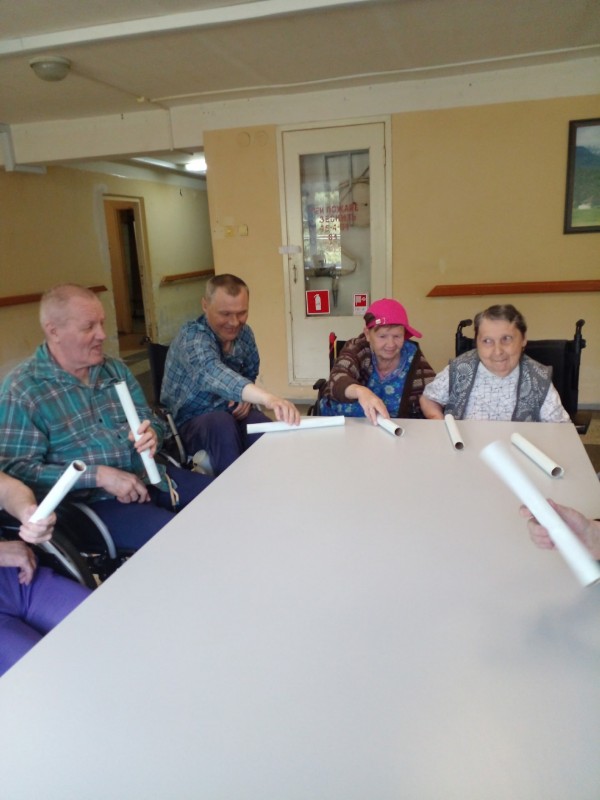 Инструктор по АФК Глушакова Г. Н провела игры: " Передай и назови", " Задания в стаканчике", получатели социальных услуг выполняли зрительную гимнастику по карточкам и показу, упражнения с трубками.