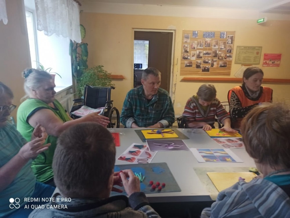Инструктор по труду Ильина Валентина Николаевна провела увлекательное и полезное занятие по лепке из пластилина. На столах расцвели диковинные цветы и появились забавные осьминожки, а самое главное — на занятии царили радость и улыбки наших подопечных.Такие занятия — это не просто веселое времяпрепровождение. Чем же полезна пластилинолепие для людей с инвалидностью?· Развитие моторики: Работа с мягким пластилином прекрасно тренирует мелкую моторику рук, силу и ловкость пальцев, что очень важно для поддержания двигательных функций.