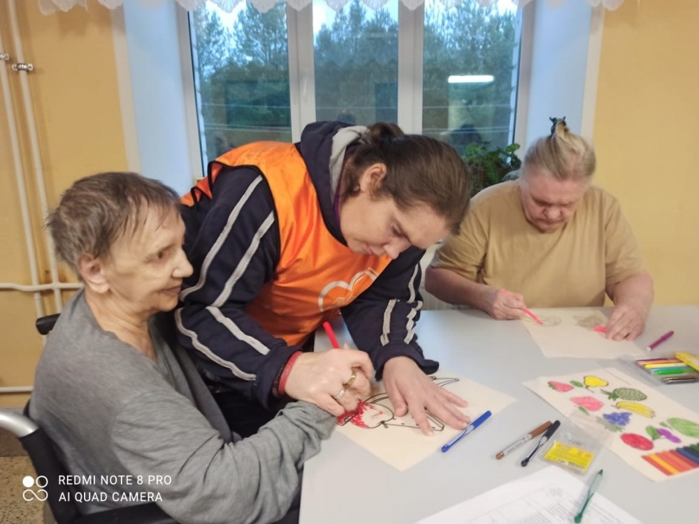 Мы достали раскраски, и каждый наш подопечный выбрал себе картинку по душе. Перед тем как взять в руки карандаши и кисти, мы немного потренировали внимание: каждый называл вслух цвета, которые планировал использовать. А потом началось самое интересное — процесс творчества! Кто-то с удовольствием взялся за цветные карандаши, кому-то больше по душе пришлись яркие фломастеры, а некоторые решили создать свои шедевры красками. Выбор материалов — тоже важная часть терапии, которая учитывает возможности и желание каждого. Работали с большим увлечением и сосредоточенностью, ведь так давно мы не раскрашивали! Итогом нашего занятия стал обновленный стенд с работами. Он теперь пестрит красками и добрыми сюжетами. Обязательно приходите полюбоваться!