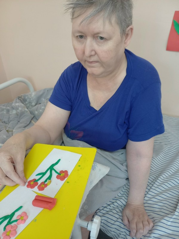 Это было удивительно трогательное занятие! Несмотря на сложности с движением рук, наши бабушки смогли своими руками создать весну. Кто-то лепил пушистые почки вербы на тонкой веточке, кто-то – солнечный цветочек.