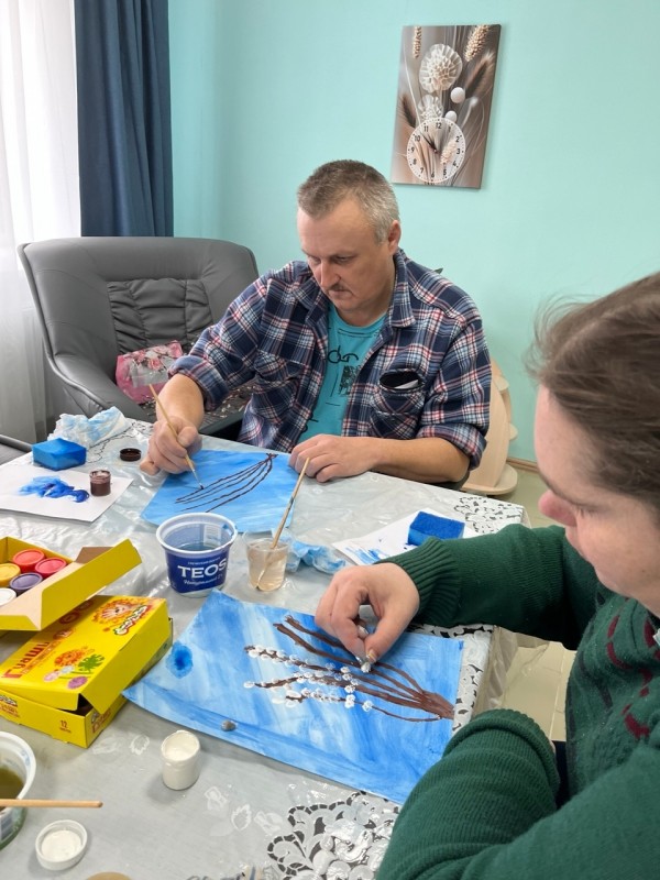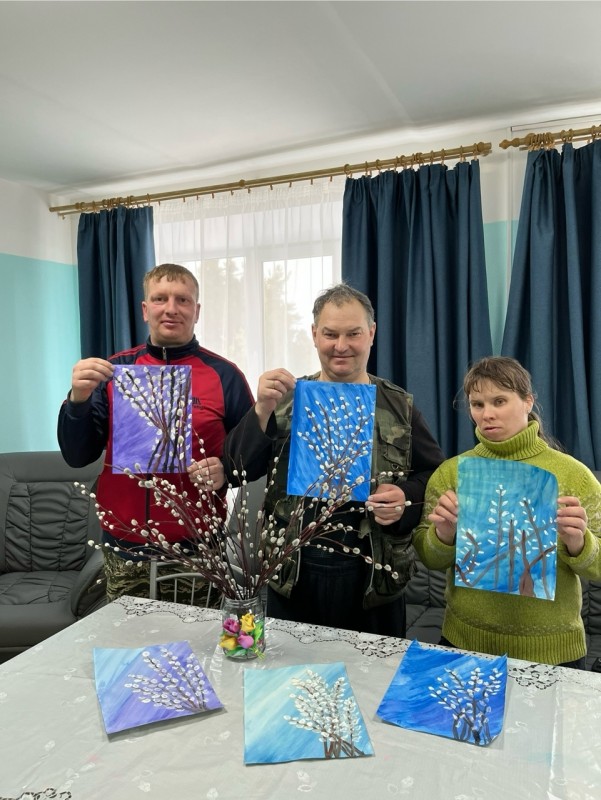 В нашем пространстве царила особая атмосфера — атмосфера весны и созидания. В рамках занятий по сопровождаемому проживанию мы устроили настоящий арт-урок, посвященный рисованию веточек вербы.