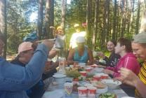 О том как прошел наш праздник, можно рассказывать долго - это палящее солнце и освежающий ветерок, это завтрак в сосновом лесу, уха на костре и жаренные сосиски на мангале, это веселые конкурсы, музыка и даже танцы, это горячий пляж, теплая вода и съемки видеоклипа. И наконец общение с животными! Да, да! На лужайке паслись лошади и мы с ними вдоволь нафотографировались. Вобщем наша поездка удалась на славу, как говорится: "Мы вернулись уставшие, но счастливые!"