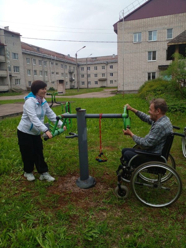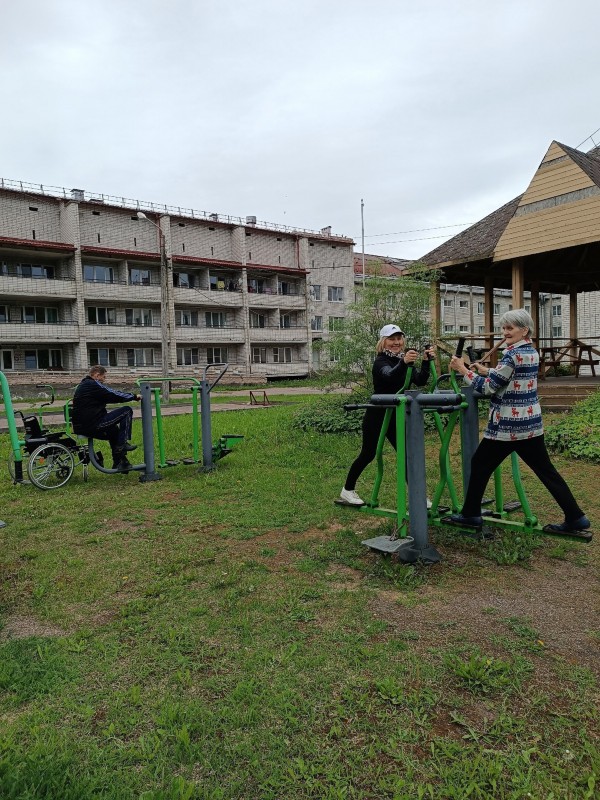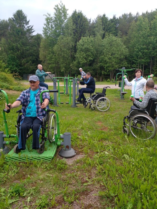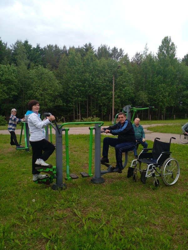 Некоторые получатели уже знакомы с тренажëрами, а кто то занимался первый раз. Особенно понравились тренажëры "Степ", " Хейп", "Лыжи"и велотренажёр. Также была предоставлена возможность позаниматься гантелями и эспандерами.