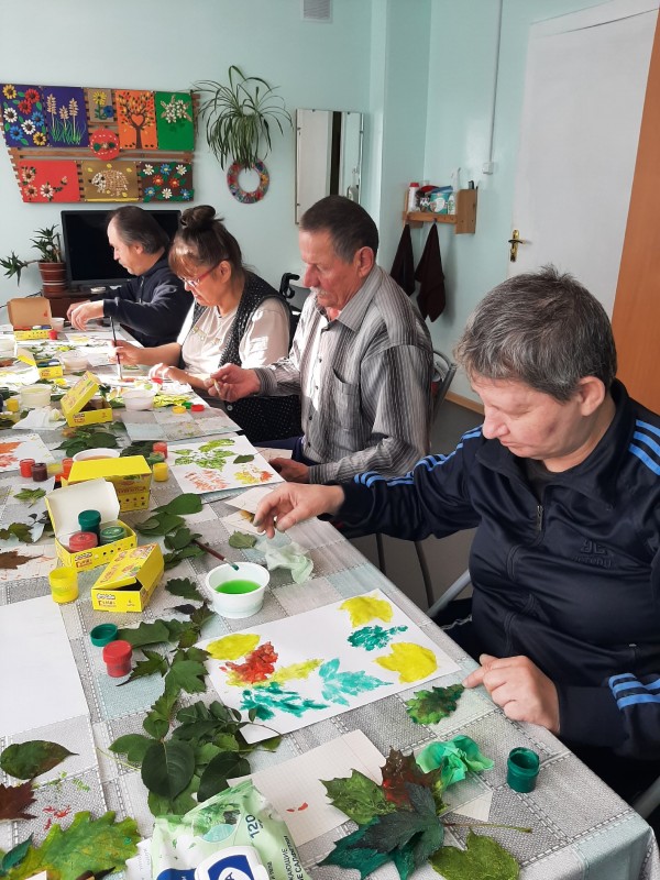 Сегодня группа людей нашего дома доказала, что искусство видеть прекрасное - это навык, который с годами только оттачивается!На творческом мастер-классе участники не рисовали кистями, а использовали саму природу как инструмент. Они создавали уникальные композиции с помощью листьев и красок!