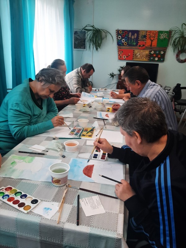 Сегодня инструктор по труду Зинкуева Н.В. провела волшебный мастер-класс по акварели для наших проживающих.