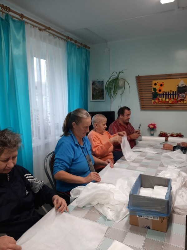Мы присоединяемся к разным акциям по сбору гуманитарной помощи, комплектуем пакеты сухого(армейского душа), заливаем окопные свечи, из подаренной дому интернату ткани шьём полотенца. Каждый старается внести свой посильный вклад, чтобы поддержать наших мужчин. Также подопечные пишут письма со словами поддержки, вяжут носки и даже вносят свои денежные средства на покупку материалов для сухого душа.