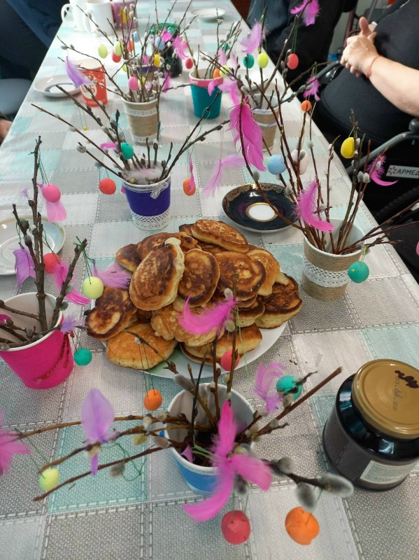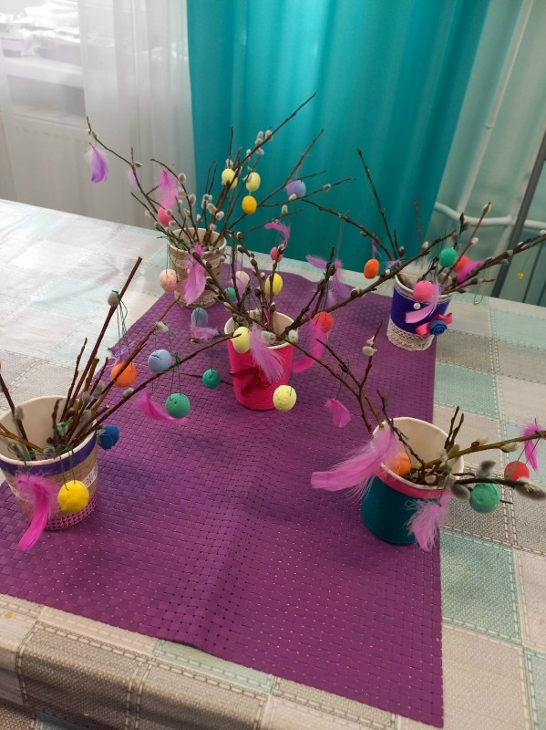 Это был настоящий праздник творчества. Всем очень понравилось работать с природными материалами – украшать веточки нежными пёрышками. Отдельный восторг – лепка яиц из пластилина и их «вывешивание» на импровизированное дерево, получилось очень красиво и необычно. Но самым вкусным моментом, конечно, стала кулинарная часть: мы вместе напекли оладьи , и они получились невероятно вкусными! Съели всё с большим аппетитом.