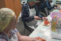 Мастер - класс" Хрустящий витамин" .Вкусно, полезно и очень душевно! Именно так можно описать наш прошедший кулинарный мастер- класс. Наши получатели услуг с большим энтузиазмом взялись за дело : кто-то уверенно шинковал капусту, кто-то с особым чувством резал лук и сладкий перец. Получился не просто салат ,а символ совместного труда и общения