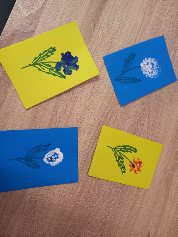 Занятие направлено на снижение эмоционального напряжения, тревожности ( арт- терапевтический эффект), поддержание моторных функций. Предварительно была проведена игра- разминка « Здравствуйте, пальчики!»: сжимание-разжимание кулачков, постукивание подушечками по предмету. Познакомились с базовыми приемами рисования: оттиск, линия, смешивание красок. Это занятие создало ситуацию успеха для каждого участника.