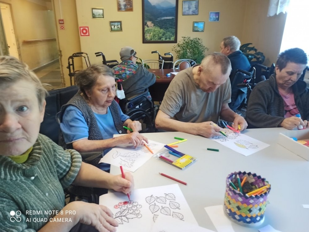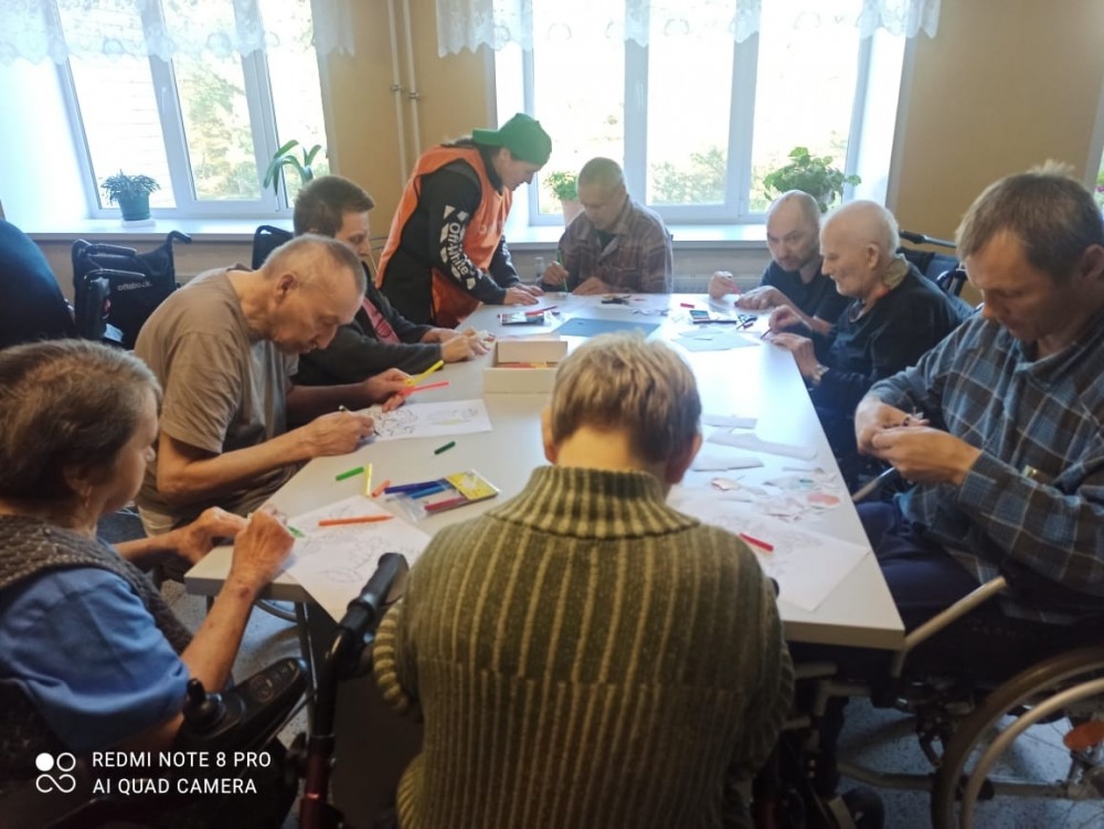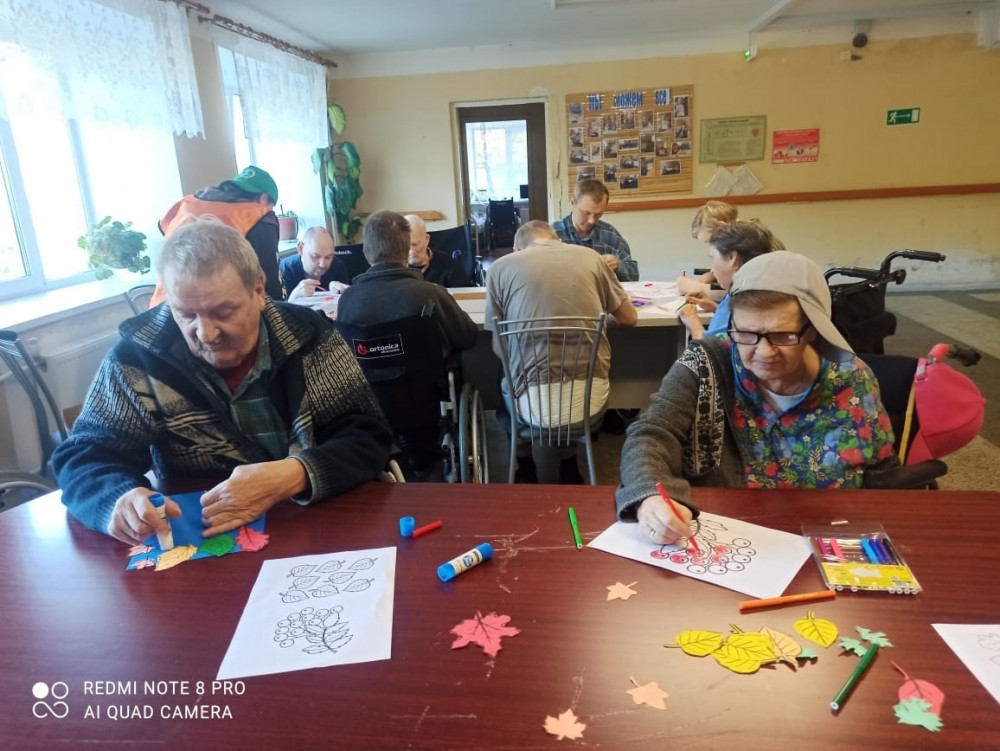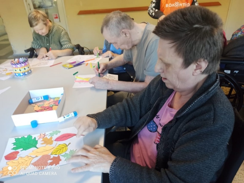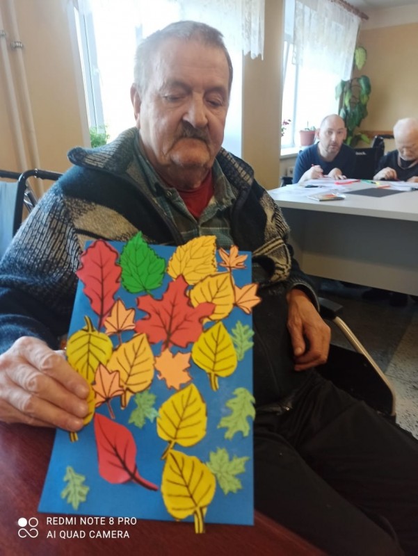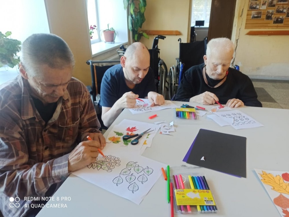 Яркая осень заглянула и на наше Отделение Милосердия. И хотя за окном стало прохладно, в наших сердцах становится теплее благодаря творческому занятию.Под чутким руководством инструктора по труду Валентины Николаевны Ильиной наши подопечные окунулись в мир красок и аппликаций. Что дают такие встречи с искусством?