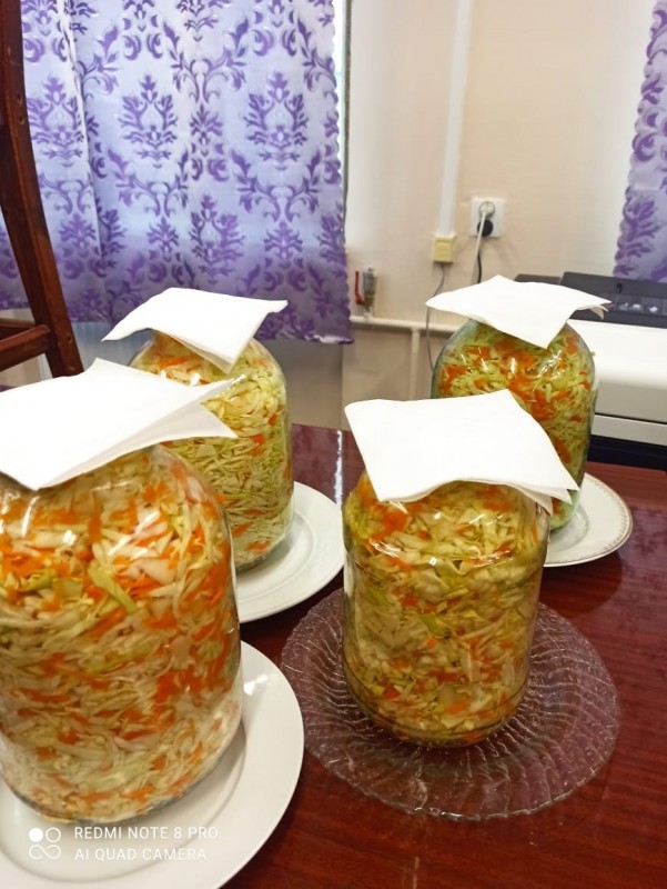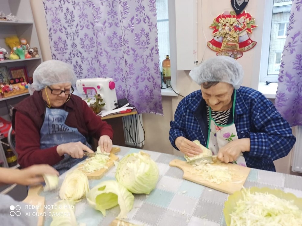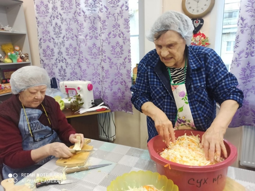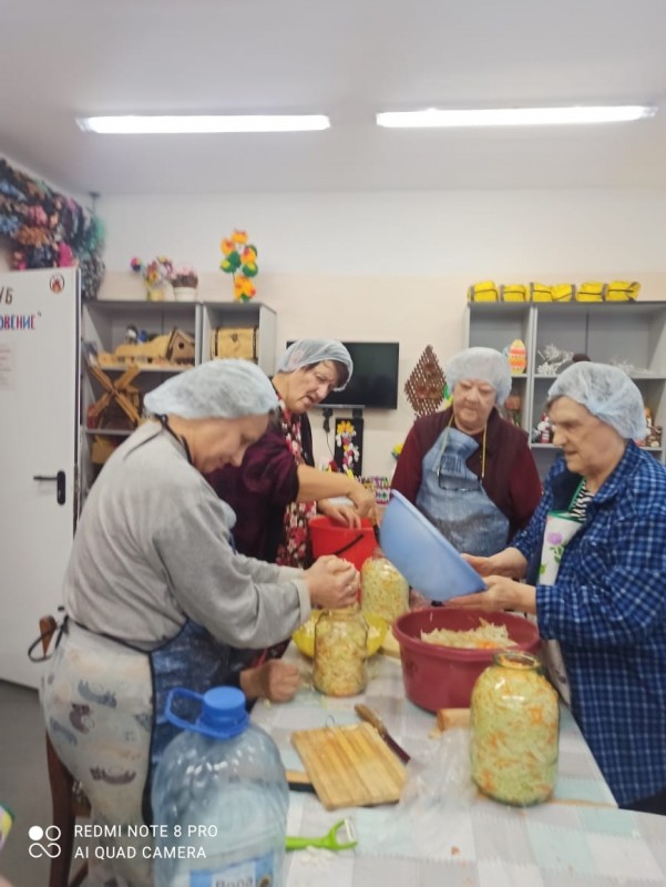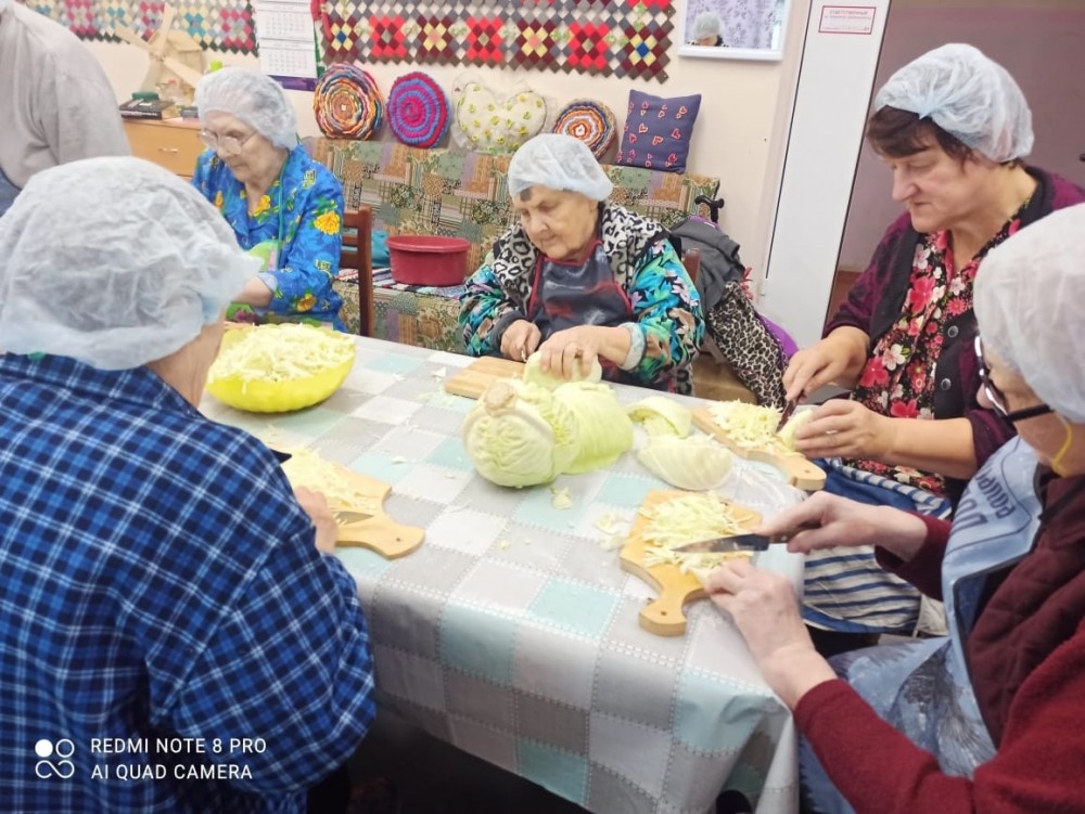 Валентина Николаевна собрала наших ветеранов в клубе «Вдохновение», и работа закипела. Наши руки шинковали, солили и утрамбовывали капусту в банки. Теперь у нас есть целая батарея трехлитровых баночек с витаминами! И этой зимой нашим ветеранам будет что открыть к ароматной картошечке — вкуснейшую, собственную квашеную капустку!Спасибо всем, кто принимал участие! Вместе мы создаём не только запасы, но и хорошее настроение!