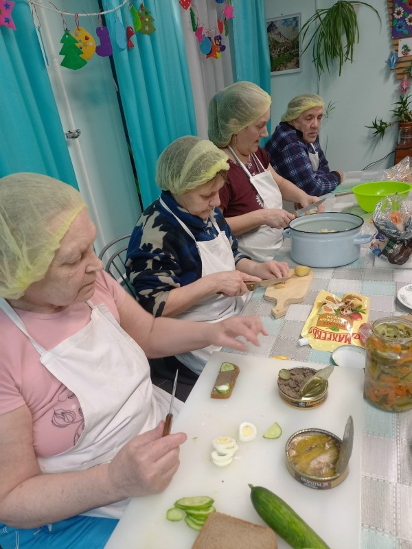 « Праздник творчества и вкуса: готовимся к Новому году вместе!» Это был не просто урок готовки , а настоящий праздник общения, творчества и совместной подготовки к самому волшебному времени года. « Оливье»- салат-символ. Было очень душевно вместе нарезать ингредиенты, вспоминать семейные рецепты. Это вернуло ощущение домашнего семейного Нового года. Аромат новогодней выпечки. Процесс приготовления и украшения печенья стал настоящим волшебством! Раскатывать тесто, вырезать звездочки, елочки, снежинки – это было прекрасной творческой терапией. Каждое печенье получилось уникальным, со своим характером.