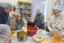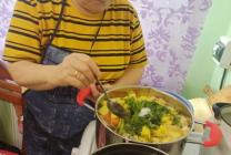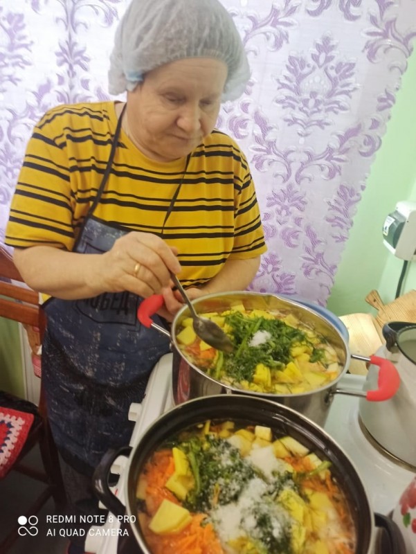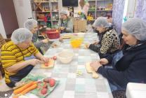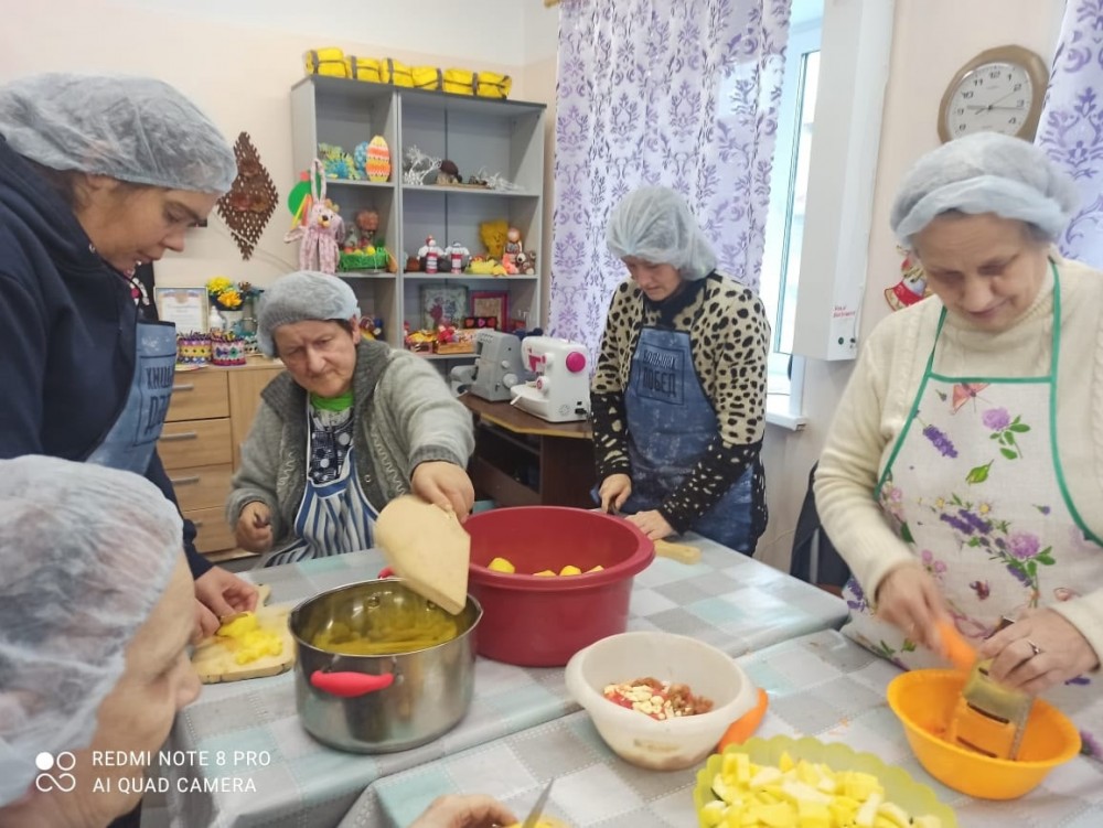 Имея за плечами уже накопленный опыт, наши ребята легко справились с этой задачей: тщательно промыли овощи, почистили картофель, затем сосредоточенно и усердно нарезали брусочками все овощи, готовили зажарку, использовали тëрку для шинковки моркови.