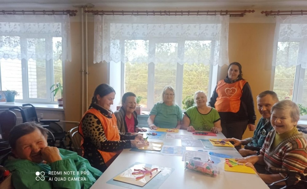 · Радость творчества и уверенность в себе: Видеть результат своего труда — созданную своими руками яркую поделку — это мощный заряд положительных эмоций и повышение самооценки.Большую помощь и поддержку оказали наши дорогие волонтеры Наталья Лапшина и Любовь Чернявская. Спасибо вам за ваше терпение, тепло и внимание, которые вы дарите нашим жителям! Такие моменты наполняют жизнь особым смыслом и красками.Фотографии передают лишь часть той теплой атмосферы, что царила на занятии. А какие замечательные получились работы!
