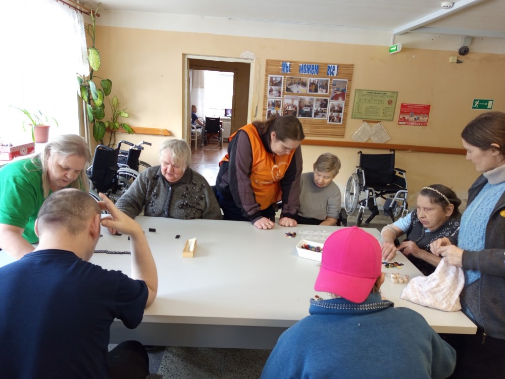 Сегодня на отделении «Милосердия» случился настоящий турнир! По просьбе наших проживающих мы устроили день игровой терапии — в ход пошли шашки, домино и любимое всеми лото.Самое трогательное событие этого дня — новичок в шашечном клубе! Алла Березина очень хотела научиться играть и с таким интересом ловила каждое слово инструктора Ильиной Валентины Николаевны, что результат не заставил себя ждать. Уже к концу занятия Алла порадовала нас своими первыми успехами! Но главное — это атмосфера. За столами было шумно, весело и по-домашнему тепло. Более опытные игроки с удовольствием подсказывали тем, кто только осваивает правила, и помогали друг другу. Вот она — настоящая командная игра!