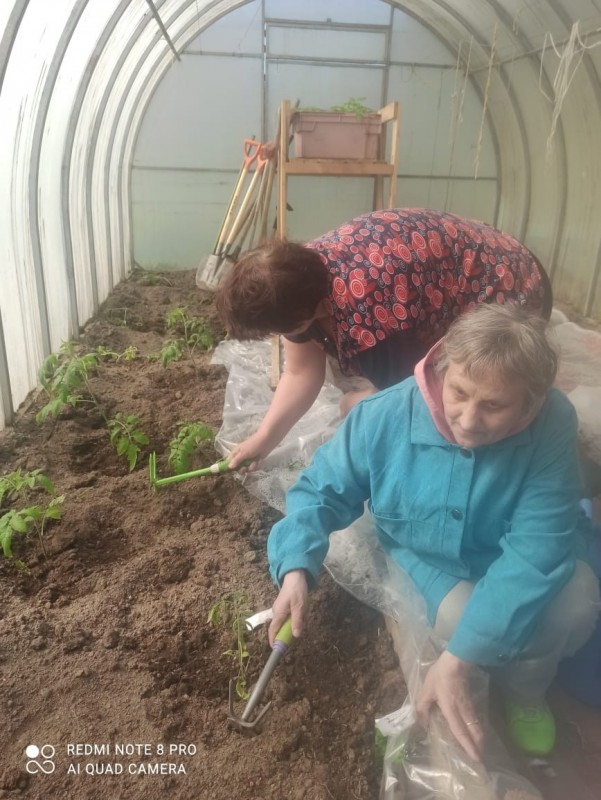 Продолжается летний период занятий трудотерапией на приусадебном участке и в теплице, где наши получатели социальных услуг старательно и с душой ухаживают за овощными, зеленными и ягодными культурами каждый день - поливают, рыхлят, удаляют сорняки.