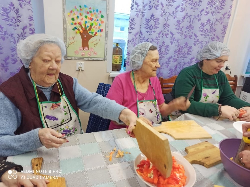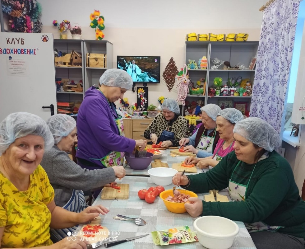 Аромат свежеиспеченной пиццы, которая только что из печи царил сегодня в клубе "Вдохновение". Засучив рукава, мы с нашими жителями устроили настоящий кулинарный праздник. Испекли целых ШЕСТЬ больших, румяных, аппетитных пицц! С разной начинкой — на любой вкус. А что может быть лучше совместной трапезы? Мы наелись сами от души, угостили наших друзей и соседей, а ещё у каждого остался кусочек «про запас» — чтобы вечером вспомнить этот замечательный день. И самое ценное, что мы услышали от гостей: «Спасибо, мы как дома побывали!». Это ли не счастье?
