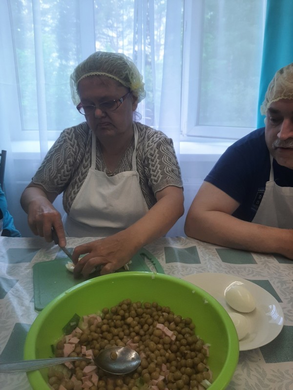 Сегодня у нас состоялся кулинарный мастер-класс. Готовили "Йогуртовый пирог с ягодами" и салат "Оливье"
