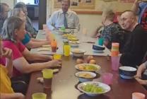 Огромный торт желали все, и его нарезал сам юбиляр, это выглядело как настоящий ритуал. Поздравления, произнесенные в стихах, трогали до глубины души и создавали ощущение единства. И, конечно, особым моментом стали поздравления, которые Сергей получил по видеосвязи от родственников. Их искренние слова и улыбки, хоть и транслировались через экран, сделали день ещё более праздничным и запоминающимся.
