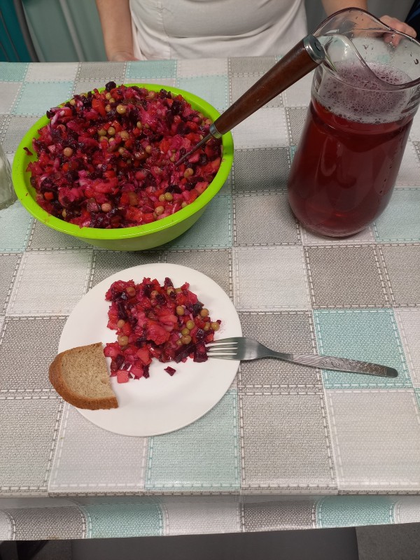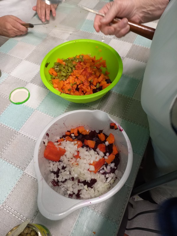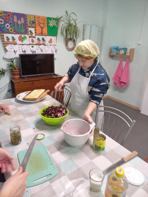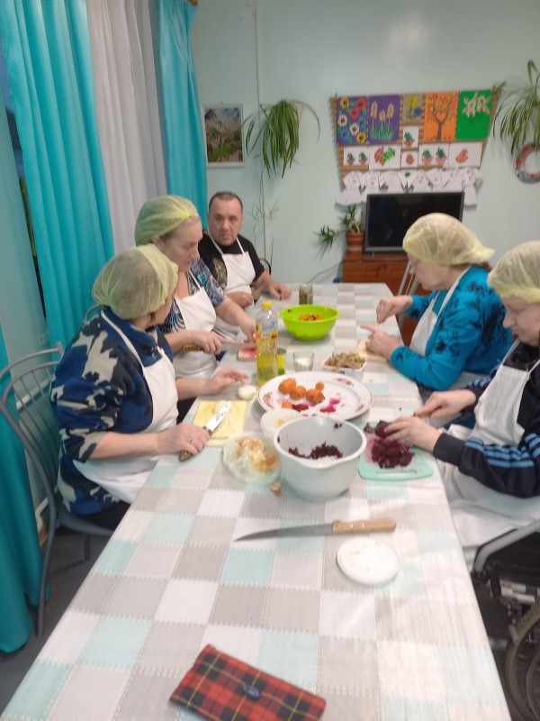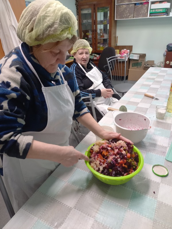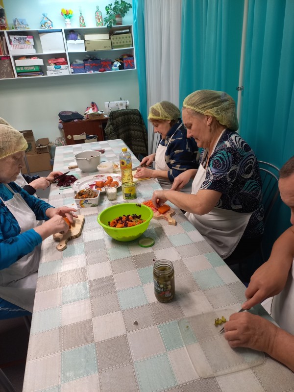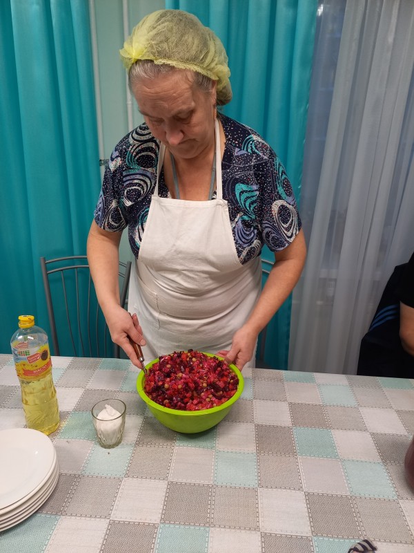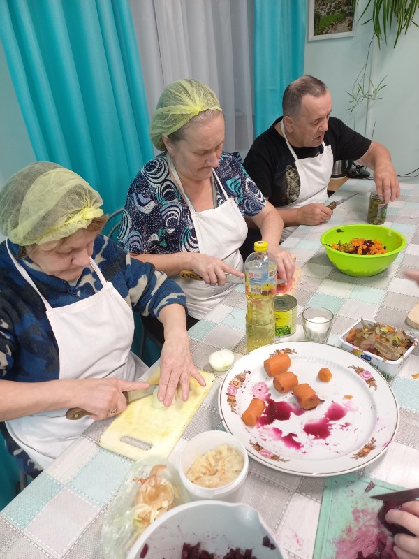 Что может быть лучше, чем приготовить салат вместе с друзьями? Наш очередной кулинарный мастер-класс был посвящен классике русской кухни — винегрету! Под чутким руководством Чимчиевой Валентины Васильевны наши участники с азартом нарезали вареные овощи, смешивали ингредиенты и заправляли салат ароматным подсолнечным маслом. Получилось невероятно вкусно, ярко и по-домашнему уютно! Этот мастер-класс подарил нам не только кулинарные навыки, но и море положительных эмоций, живого общения и совместного творчества. Обстановка была по-настоящему теплой и дружеской, а в конце всех ждала дегустация собственноручно приготовленного угощения!