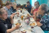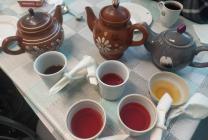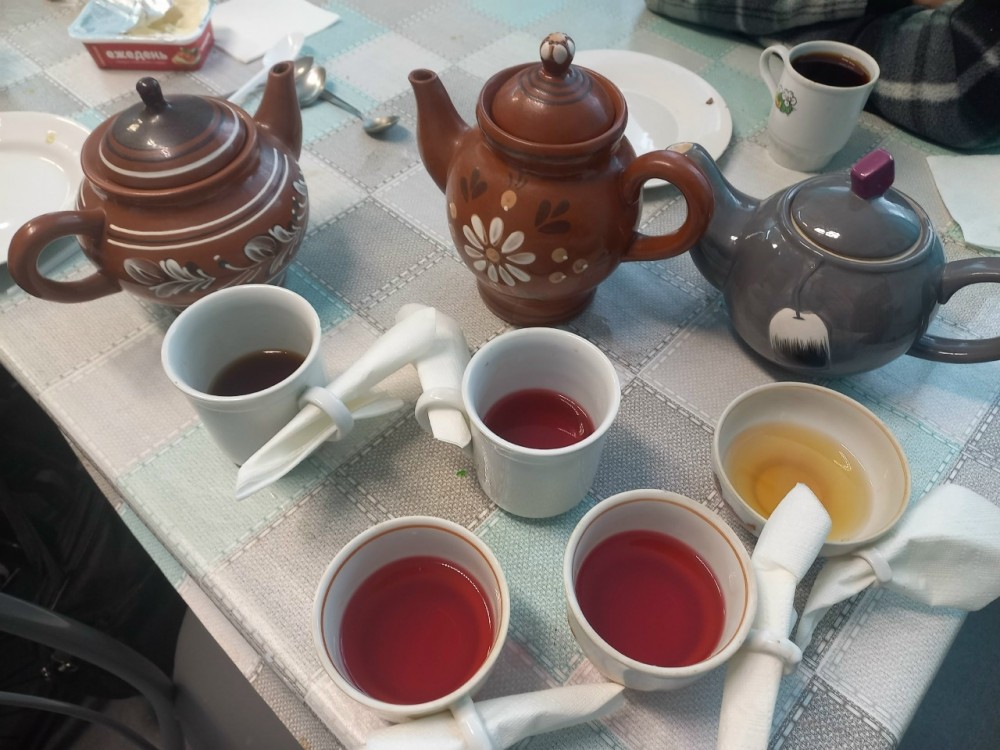 Дегустация чая. Нужно было с закрытыми глазами угадать, какой чай налит в чашку: душистый иван-чай, яркий каркаде или незнакомый улунг. Всем понравились заваренные чаи.